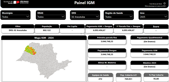 O IGM SUS Paulista é um recurso do Tesouro Estadual para dar suporte aos 645 municípios paulistas, no enfrentamento às arboviroses urbanas. Para verificar o recurso repassado para o combate à dengue em cada município, basta acessar o link https://nies.saude.sp.gov.br/ses/publico/igm