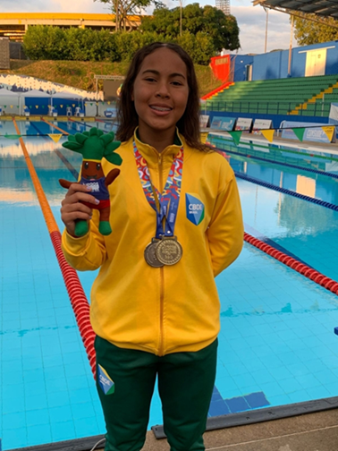 Julia Naomi foi a terceira na composição da prova. Na prova dos 50m Livre classificou com o terceiro melhor tempo nas eliminatórias da manhã. A tarde numa chegada espetacular ela foi a vice-campeã Sul Americana com a expressiva marca de 27″31. “Marca muito boa pra uma menina de 13 anos. Ela quase levou o ouro, foi na batida de unha. Ela está super feliz com essas conquistas e realizou um dos seus primeiros sonhos que era ser convocada na seleção brasileira. Essas conquistas internacionais ela entra para a galeria das histórias andradinenses de sucesso, esse foi um grande resultado para o Brasil, mas principalmente para a natação andradinense, e vem a coroar toda dedicação e comprometimento com a modalidade em nossa cidade” – acrescentou o professor Careca.