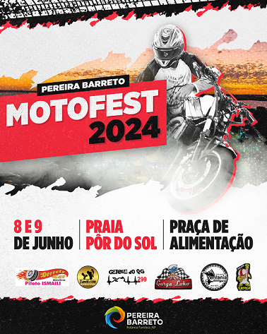 Neste final de semana, dias 8 e 9 de junho, Pereira Barreto sediará o MotoFest 2024 na Praia Pôr do Sol. O evento promete grandes apresentações e shows que vão animar os participantes, além de uma super praça de alimentação com diversas opções gastronômicas. A programação do MotoFest inclui atrações que visam proporcionar momentos de diversão e entretenimento para os amantes do motociclismo e para as famílias que comparecerem ao evento.