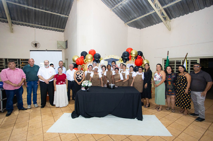 A Prefeitura de Castilho, em parceria com o SENAI, a Câmara Municipal e a Secretaria Municipal de Desenvolvimento Econômico e Social, realizou na noite de ontem (17) a formatura da 1ª turma do curso de Qualificação Profissional em Confeitaria. A cerimônia aconteceu no prédio da 3ª Idade e marcou um momento de conquista para os 14 alunos que concluíram a capacitação.