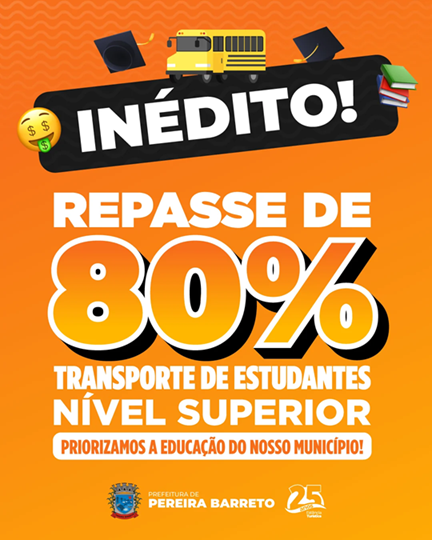 A Prefeitura da Estância Turística de Pereira Barreto, por meio do prefeito dr. Hermínio e do vice-prefeito Silvio, deu um passo significativo em prol da educação. Agora, os estudantes do município terão uma ajuda de custo equivalente a 80% do valor da mensalidade gasta com transporte. A medida, que começará a valer já no primeiro mês de aula, representa um marco no apoio aos jovens universitários e beneficiará centenas de famílias.