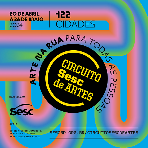 O Circuito Sesc de Artes 2024 traz uma extensa programação nas áreas de música, teatro, dança, circo, cinema, literatura, artes visuais e tecnologias. Entre os dias 20 de abril e 26 de maio, as ruas, praças e parques de 122 municípios paulistas vão receber 75 trabalhos artísticos, entre espetáculos, intervenções, mediações de leitura, oficinas e vivências.