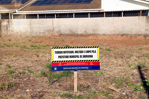 A Prefeitura de Andradina já fez a limpeza de terrenos que estavam sujos e sem providências pelos proprietários. O quarto deve ser limpo ainda está semana e outros 20 estão nos últimos dias de prazo para providência dos proprietários. Segundo a diretora do Departamento de Fiscalização de Tributos e Posturas, Fernanda de Lucena Novaes Tavares, todos os terrenos que forem limpos pela prefeitura, já tiveram todos os outros meios de resolução esgotados (notificações e autos de infração).