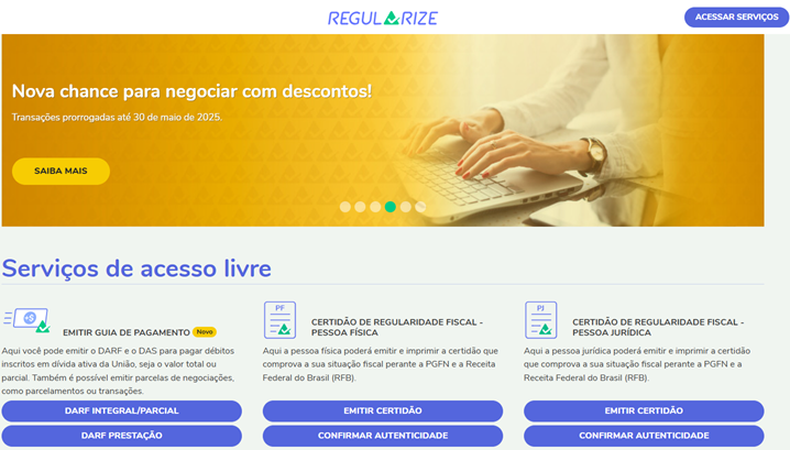 A iniciativa faz parte da Semana Nacional de Regularização Tributária, promovida pela Procuradoria-Geral da Fazenda Nacional (PGFN) e pelo Conselho Nacional de Justiça (CNJ).