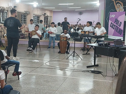Na noite desta terça-feira, 21, alunos do Projeto Guri de Castilho presentearam os pais com belíssimas apresentações musicais. O evento, denominado “Vozes do mundo, Sons do Brasil”, teve como objetivo celebrar o Dia Internacional da Música (01/10) e Dia da Música Popular Brasileira (17/10). As apresentações ocorreram na sala de dança do CIEC, devido a reforma do anfiteatro.