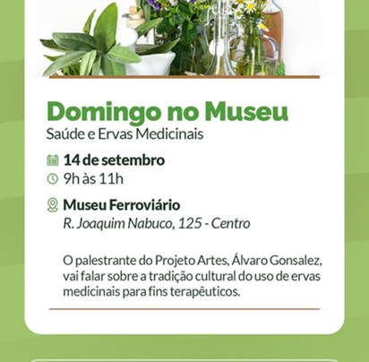 Domingo no Museu terá atividade sobre uso terapêutico de ervas medicinais
