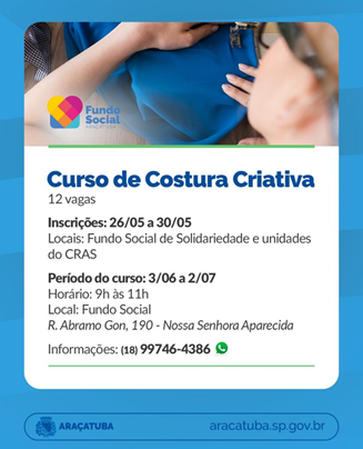 Fundo Social de Araçatuba recebe até dia 30 inscrições para cursos de costura criativa e de patch aplique