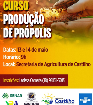 Inscrições abertas para curso gratuito de produção de Própolis em Castilho