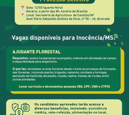 Eldorado Brasil busca ajudante florestal em Castilho via Balcão de Emprego