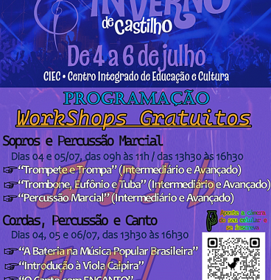 “Inscrições para WorkShops gratuitos já estão abertas e podem ser feitas pelo link: https://forms.gle/7Rsc6NPq1uzSEN2m9, ou presencialmente no CIEC” Assessoria de Comunicação…
