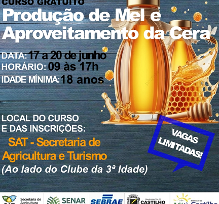 Curso gratuito capacitará castilhenses na produção de mel e aproveitamento da cera