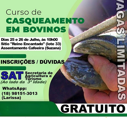 Inscrições para curso gratuito de Casqueamento em Bovinos estão abertas