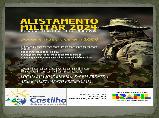 Assessoria de Comunicação A Junta Militar de Castilho reforça que jovens nascidos no ano de 2006 têm até o dia…