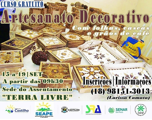 Castilho abre inscrições para curso inédito de Artesanato com folhas, galhos, cascas e grãos de café