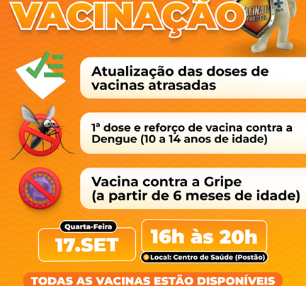 Assessoria de Comunicação A Secretaria Municipal de Saúde de Pereira Barreto promove, nesta quarta-feira (17/09), uma ação especial de vacinação no Postão de Saúde,…