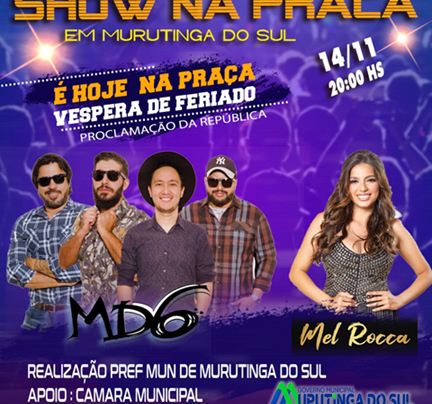 “evento na véspera do feriado da Proclamação da República terá a banda MD6 e Mel Rocca” José Carlos Bossolan Nesta…