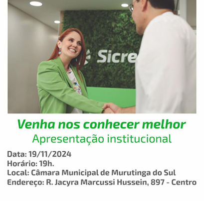 “Temos de abraçar o Sicredi para o desenvolvimento de Murutinga”, enfatizou o prefeito Cristiano