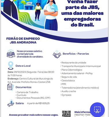 Assistência Social de Murutinga do Sul e JBS farão feirão de empregos na segunda