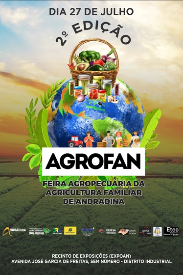 A segunda edição da Agrofan (Feira da Agricultura Familiar de Andradina , acontece no dia 27 de julho Recinto de Exposições Miguel Rodrigues da Silva, resgatando o modelo das antigas exposições agropecuárias.