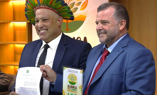 O presidente da CONAFER, Carlos Lopes assina o termo de compromisso “Aliança pelo Campo” ao lado do presidente do INCRA, César Aldrighi