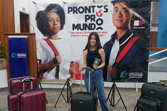 A estudante Fernanda Souza dos Santos, de 15 anos, da 1ª série do Ensino Médio da E.E. Armel Miranda, de Castilho, está prestes a embarcar para o Reino Unido, onde passará seis meses em um intercâmbio educacional. Ela faz parte dos 500 primeiros estudantes classificados para o “Prontos Pro Mundo”, o maior programa público de intercâmbio realizado no Brasil.