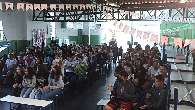 A apresentação de “Drop” em Santa Clara aconteceu na Escola Municipal Prefeito Oswaldo Montanari, para estudantes do ensino fundamental 2. No espetáculo, um grupo de jovens tenta entender o motivo de uma amiga cometer suicídio e chamam então o público para ouvir suas histórias e criam um entrelaçado de pensamentos, anseios, angústias e frustrações.