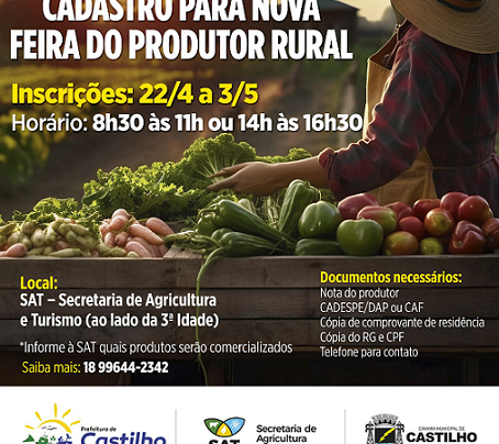 “Cadastro também é válido para artesãos. Prazo termina no dia 05 de maio e Secretaria de Agricultura seguirá normas da…