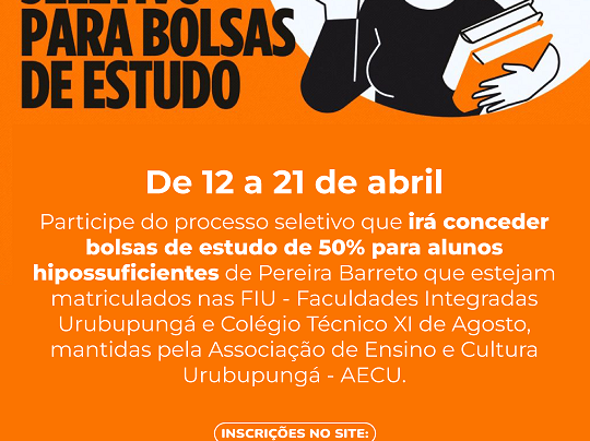 Inscrição da Prefeitura de Pereira Barreto para processo seletivo de bolsa de estudo das FIU vai até dia 21