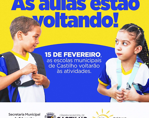 Aulas em Castilho começam dia 15 de fevereiro, informa Secretaria de Educação