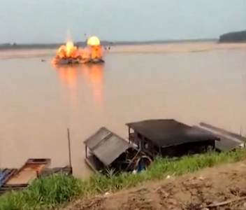 PF e fiscais do Ibama destroem dragas de garimpo ilegal no rio Madeira em Rondônia