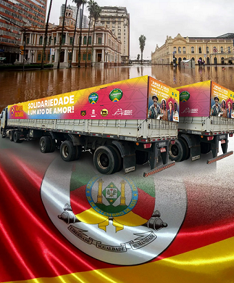 Nesta quarta-feira (8), 2 carretas solidárias saem de Brasília com destino ao Rio Grande do Sul carregadas de doações. São alimentos, água, leite, fraldas, material de saúde, limpeza e higiene, ração para os animais e cobertores. As atualizações em relação às fortes chuvas que assolam o estado gaúcho mostram uma situação muito difícil e angustiante, conforme a Central de Monitoramento da CONAFER indica pelo movimento de nuvens carregadas vindas da Argentina. O que temos visto são cenas de terror e muito sofrimento. Até ontem à noite (6), os registros indicam 85 mortos, conforme boletim da Defesa Civil. Os feridos somavam 339, enquanto 134 pessoas permaneciam desaparecidas, e mais de 201 mil pessoas foram deslocados de suas residências. Entre estes, 153 mil estavam desalojadas e aproximadamente 47.676 em abrigos públicos. As devastadoras cheias não pouparam os territórios indígenas, alguns enfrentando situações de extrema gravidade. Entre os mais impactados estão os Guarani Mbyá, obrigados a abandonar suas aldeias pela força das águas