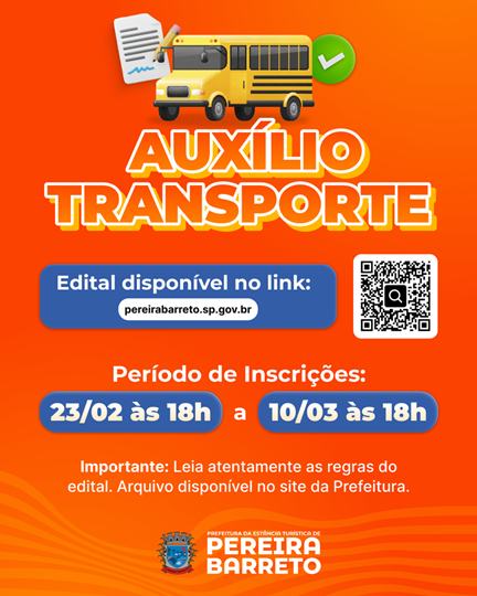 Prefeitura de Pereira Barreto abre inscrições para auxílio transporte a estudantes