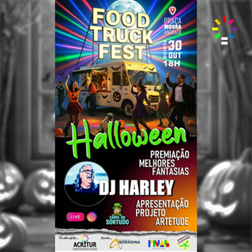 O Halloween do Food Truck Fest promete ser um dos pontos altos do mês de outubro em Andradina. A festa acontece hoje (30). Pelo sucesso da edição passada a festa agora faz parte do calendário de eventos tradicionais na Praça Moura Andrade. O Food Truck Fest já está na rota das “gostosuras” e outubro termina com essa grande festa de Halloween, onde as pessoas vão se divertir ao som DJ Harley e apresentação do projeto Artetude.