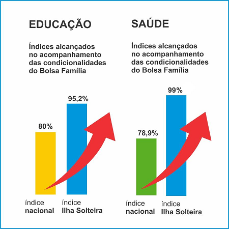 Em Ilha Solteira, dos 692 beneficiários do Bolsa Família, que possuem condicionalidades na área da Educação, 659 foram acompanhados em novembro de 2023. Isto significa um percentual de 95,2% de pessoas que cumpriram as condições impostas pelo Programa. Este índice ficou acima do índice nacional, que atingiu cerca de 80% dos beneficiários do PBF.