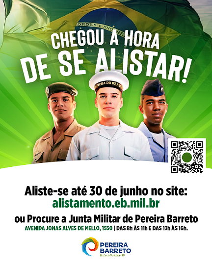 Os jovens do sexo masculino, nascidos em 2006, que completam 18 anos até o final de 2024, têm até 30 de junho para realizar o alistamento militar, que pode ser feito de forma online. Aqueles que deixarem de se alistar dentro do prazo ou nascidos em anos anteriores que não fizeram o alistamento devem comparecer à Junta de Serviço Militar para regularizar a documentação.