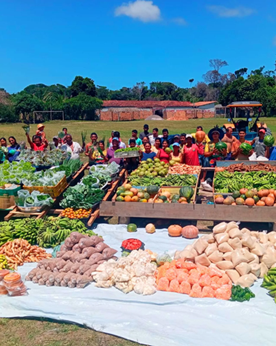 Neste ano de 2024, na Bahia, indígenas da Associação Comunitária Indigena Pataxó (ACIPAMM) da Aldeia Meio da Mata, em Porto Seguro-BA, foram contemplados com o PAA, coordenado pelos ministérios do Desenvolvimento e Assistência Social, Família e Combate à Fome (MDS), do Desenvolvimento Agrário e Agricultura Familiar (MDA) e executado pela Conab. Para conquistar o PAA, estes 39 agricultores indígenas produziram 94,59 toneladas de alimentos, que foram entregues à unidade recebedora, a Associação de Mulheres da Aldeia Boca da Mata. Os alimentos atenderam 500 famílias da comunidade de Boca da Mata. A lista é enorme: maxixe, quiabo, melancia, alface, tomate, batata doce, bolo de aipim, bolo de ovos, bolo de milho, cebolinha verde, farinha de mandioca, coentro, couve, feijão, jiló, limão e farinha de tapioca.