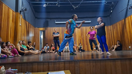 Durante as aulas teóricas e práticas, os participantes puderam aplicar em palco as técnicas aprendidas, em cenas improvisadas e encenações dirigidas. O professor de dança Daniel Romalício destacou a importância do conteúdo para seus projetos: